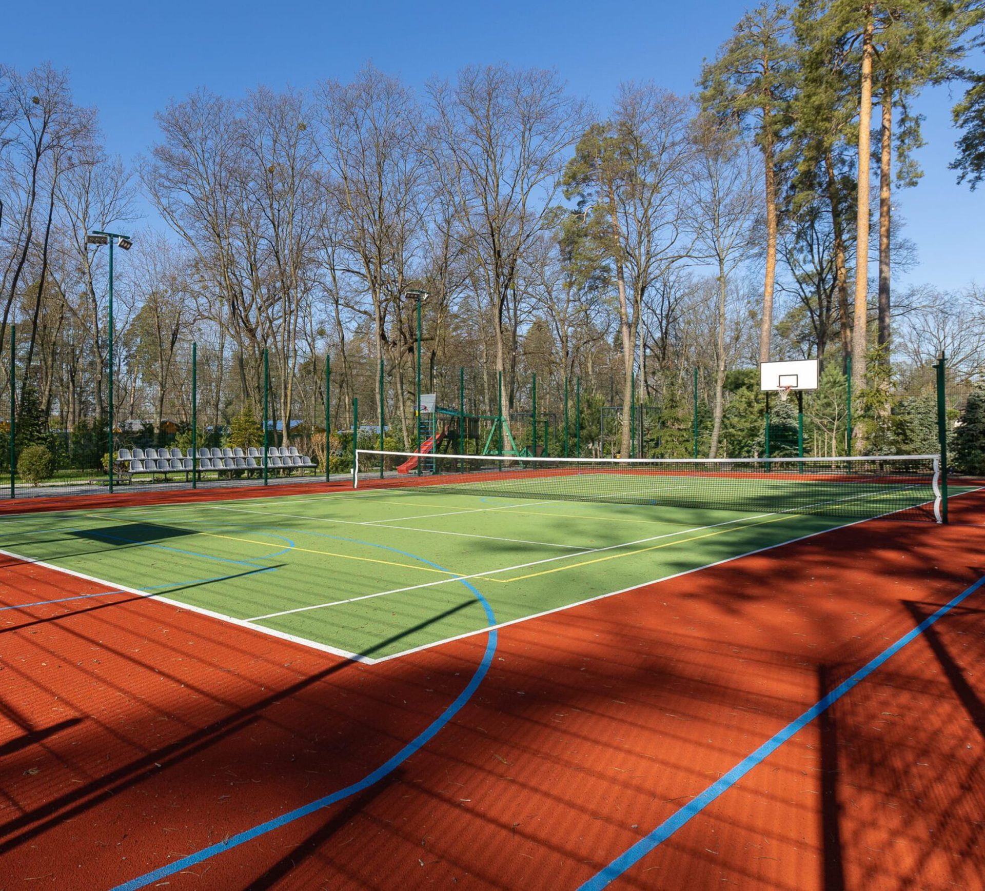 Відкритий тенісний корт розташований серед соснового лісу — ідеальні умови для тренування або гри з друзями. Якщо ви лише починаєте або хочете покращити техніку, доступні індивідуальні заняття з тренером — ми підтримуємо ваш розвиток на будь-якому рівні.