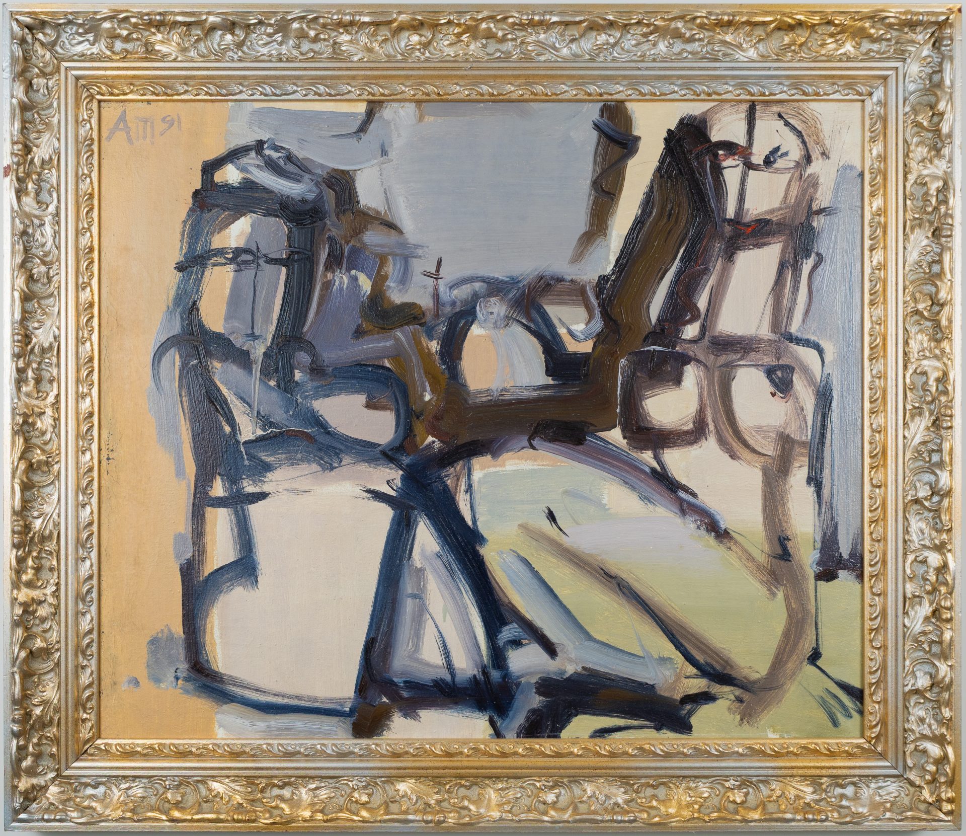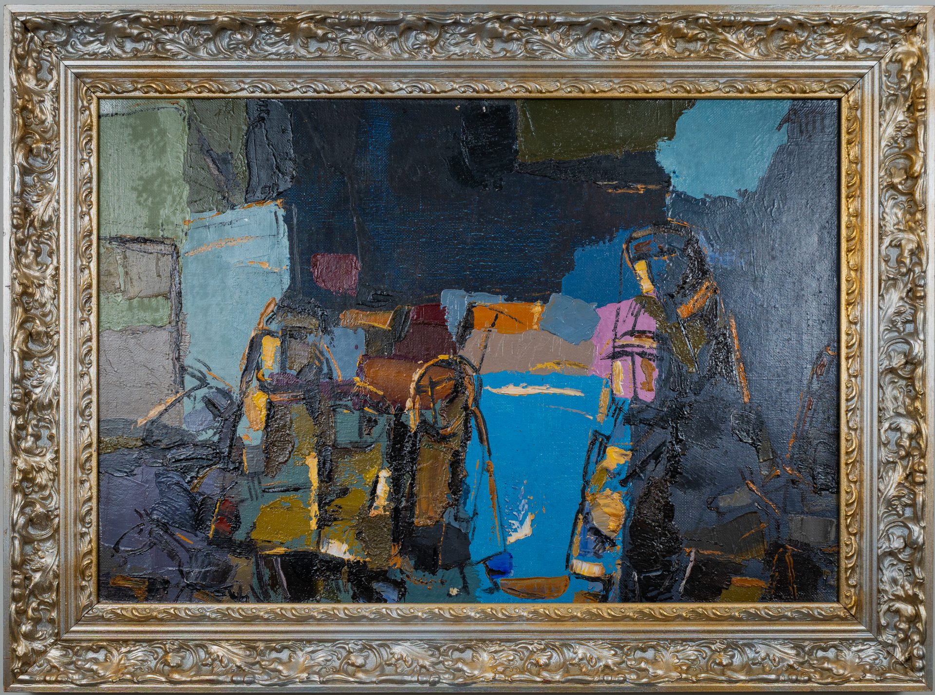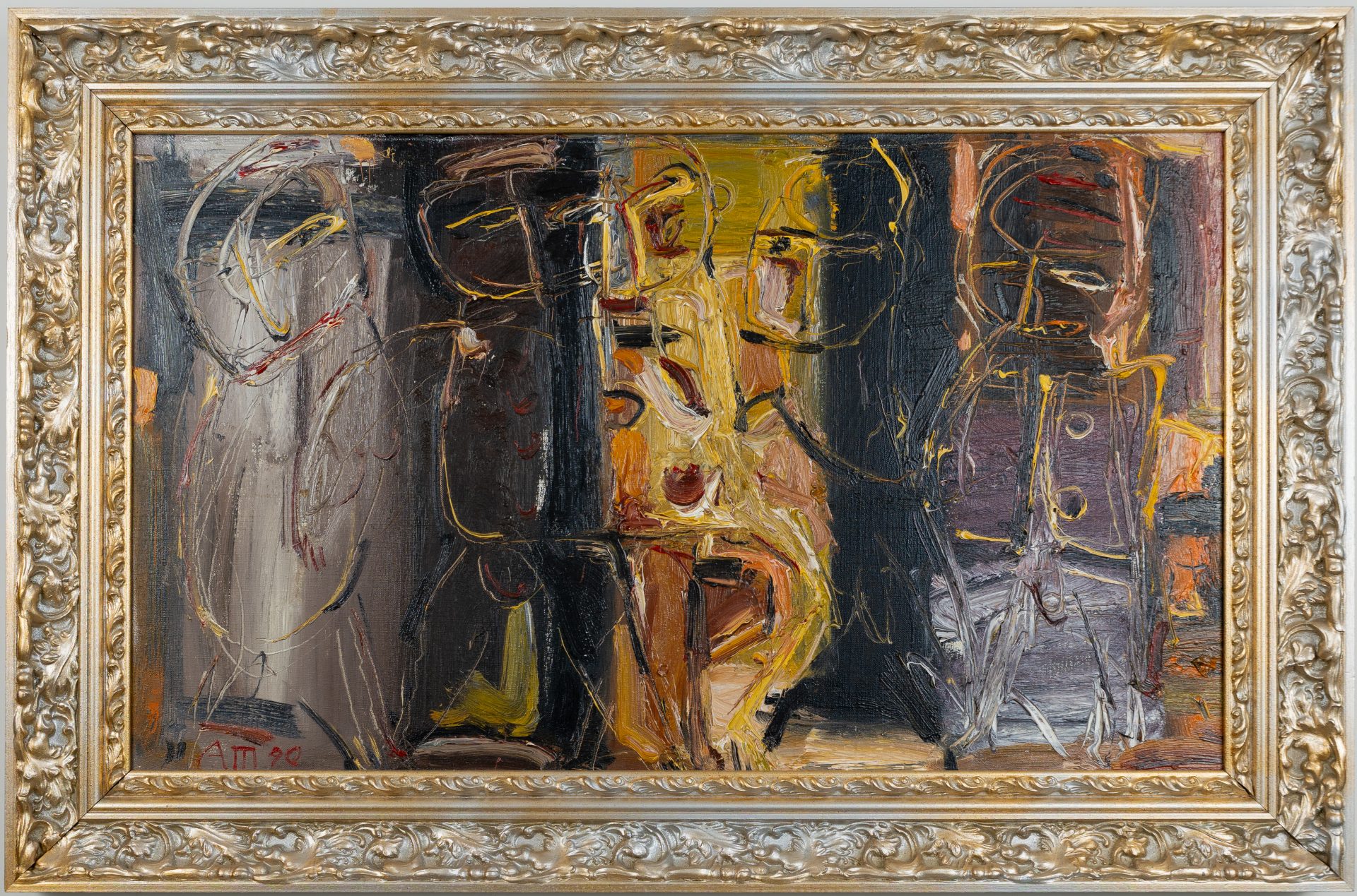 Експресивними лініями, що утворюють фігуративні зображення, художник, немов скульптор стеком “розрізає” композиційний простір, що базується на товстих шарах фарби.
