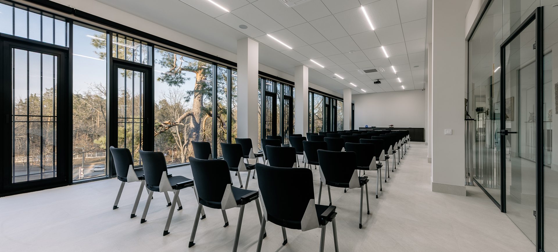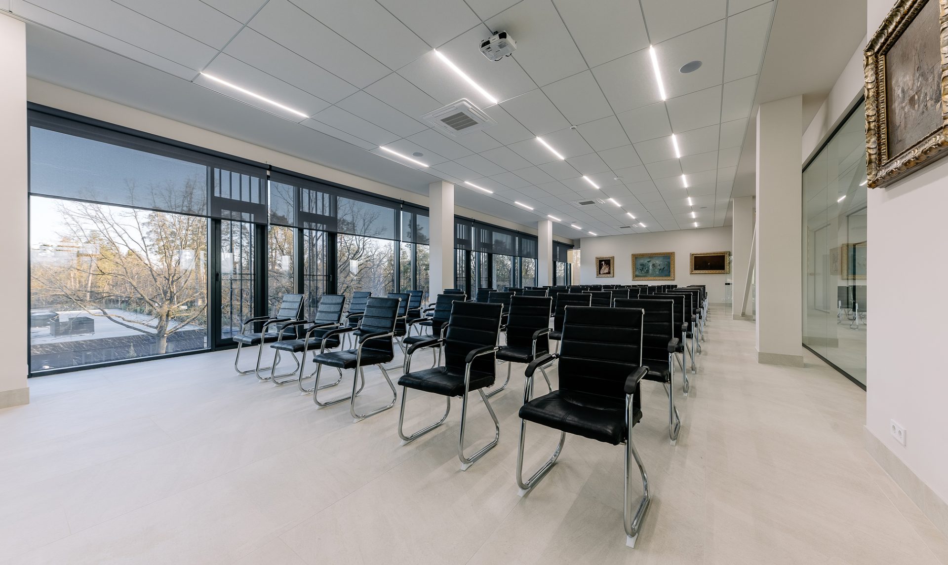 У розпорядженні гостей — шість конференц-залів різних розмірів і кімната для переговорів, для стратегічних сесій, семінарів, переговорів чи масштабних конференцій. Зали з панорамними вікнами, сучасним оснащенням і можливістю різного зонування під будь-який формат події.