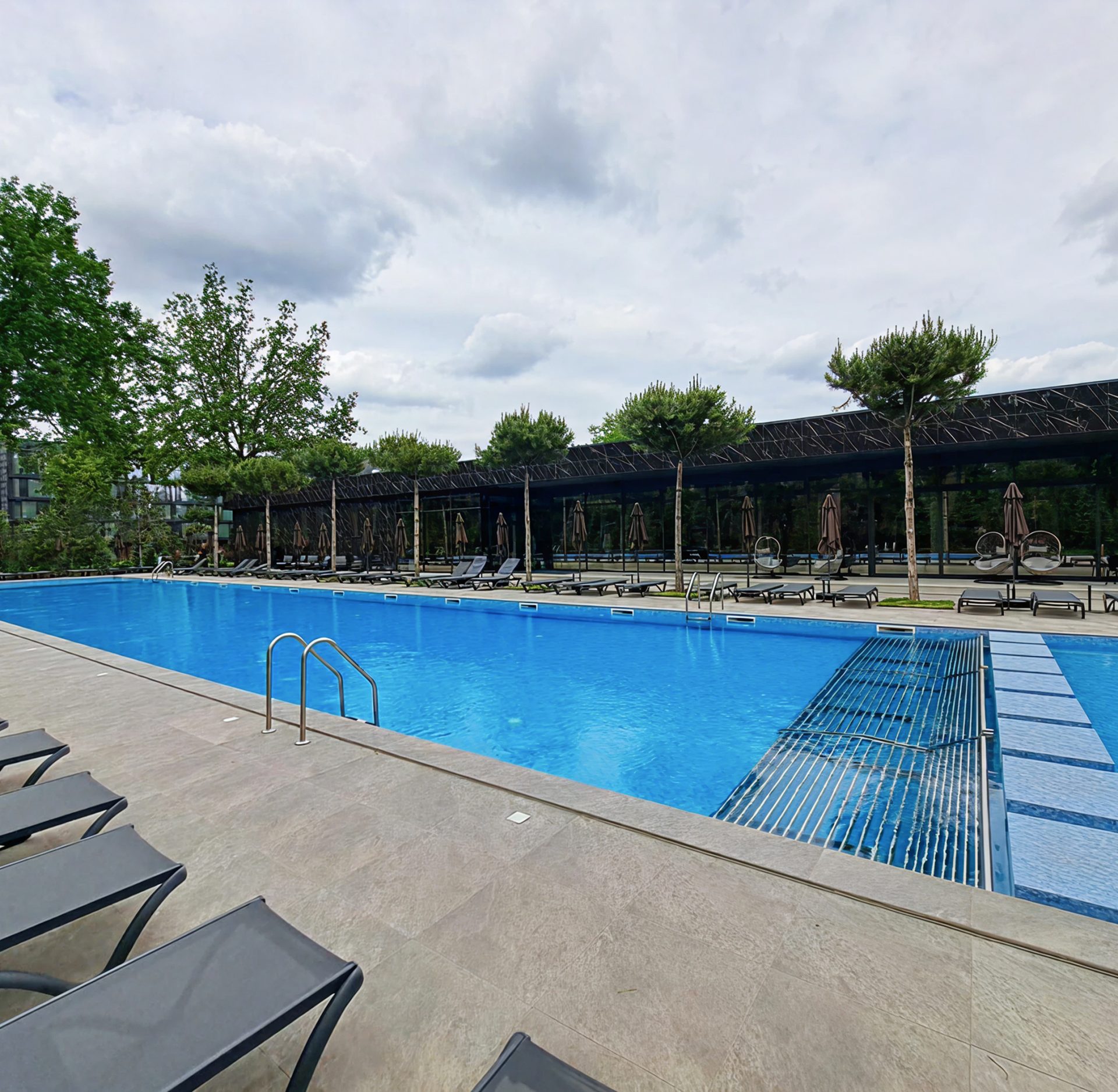 Кілька басейнів, включаючи ті, що зручно підходять для плавання підлітків. Для найменших гостей — дитячий басейн із безпечною глибиною 50 см. Обидва розташовані поруч із дорослими басейнами, тож родина завжди разом. Критий басейн — підходить для будь-якої пори року. Відкритий басейн — серед сосен, ідеальний для літнього відпочинку з дітьми на природі.