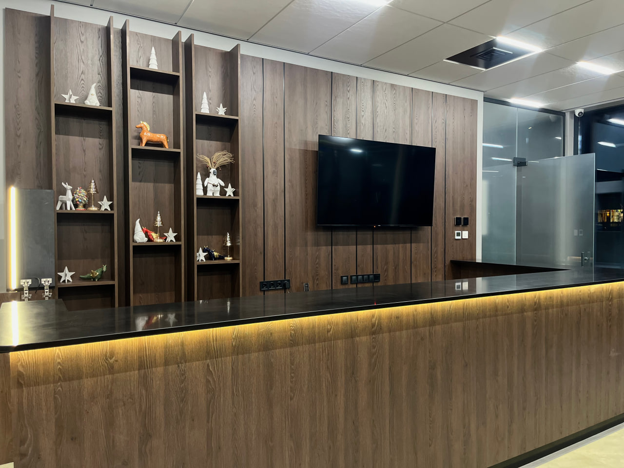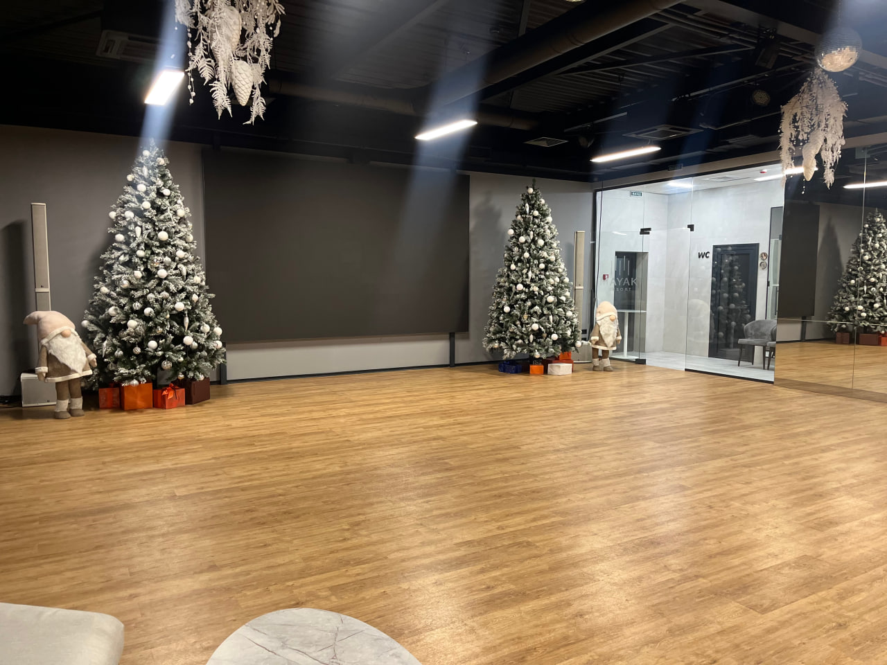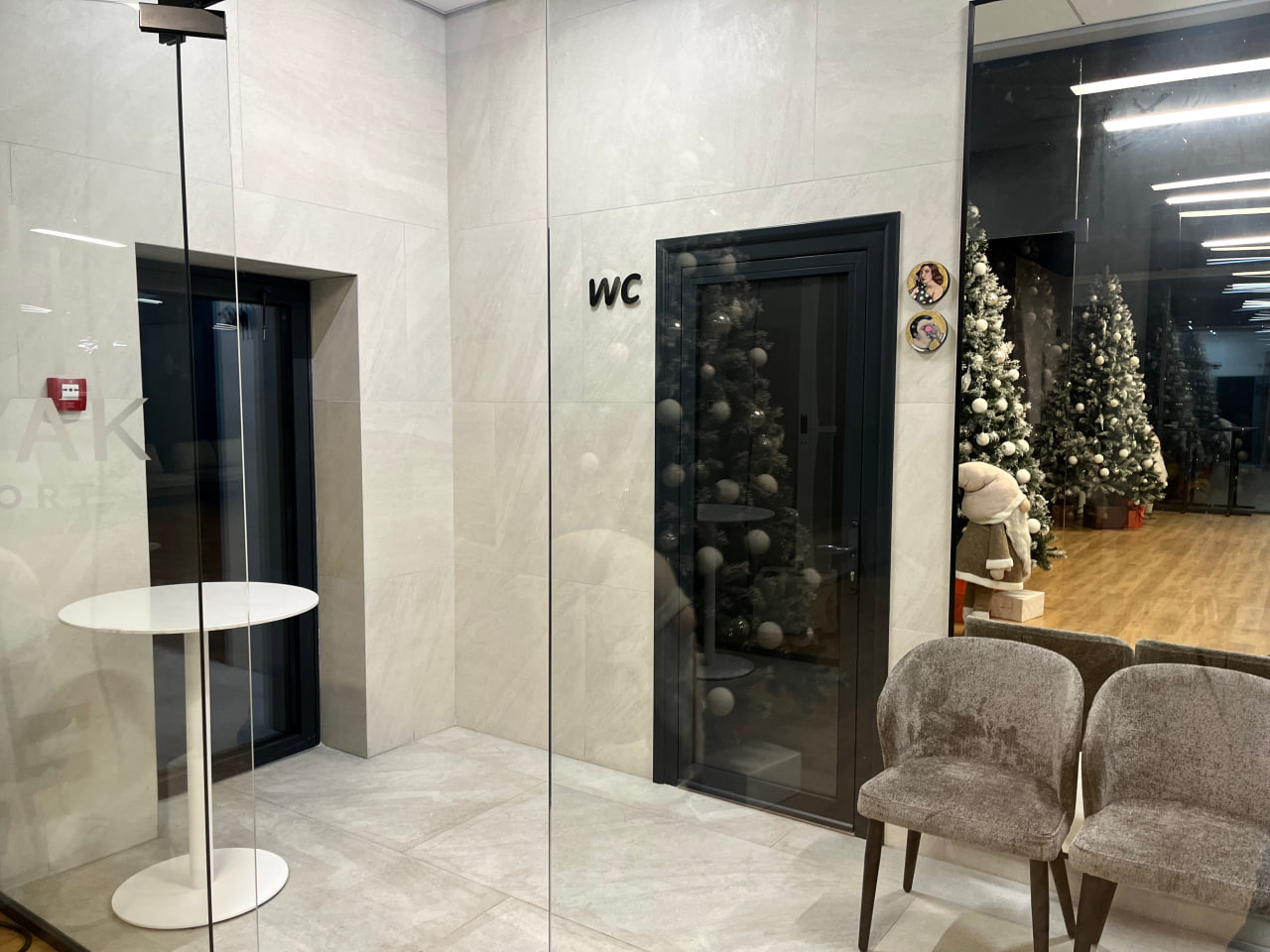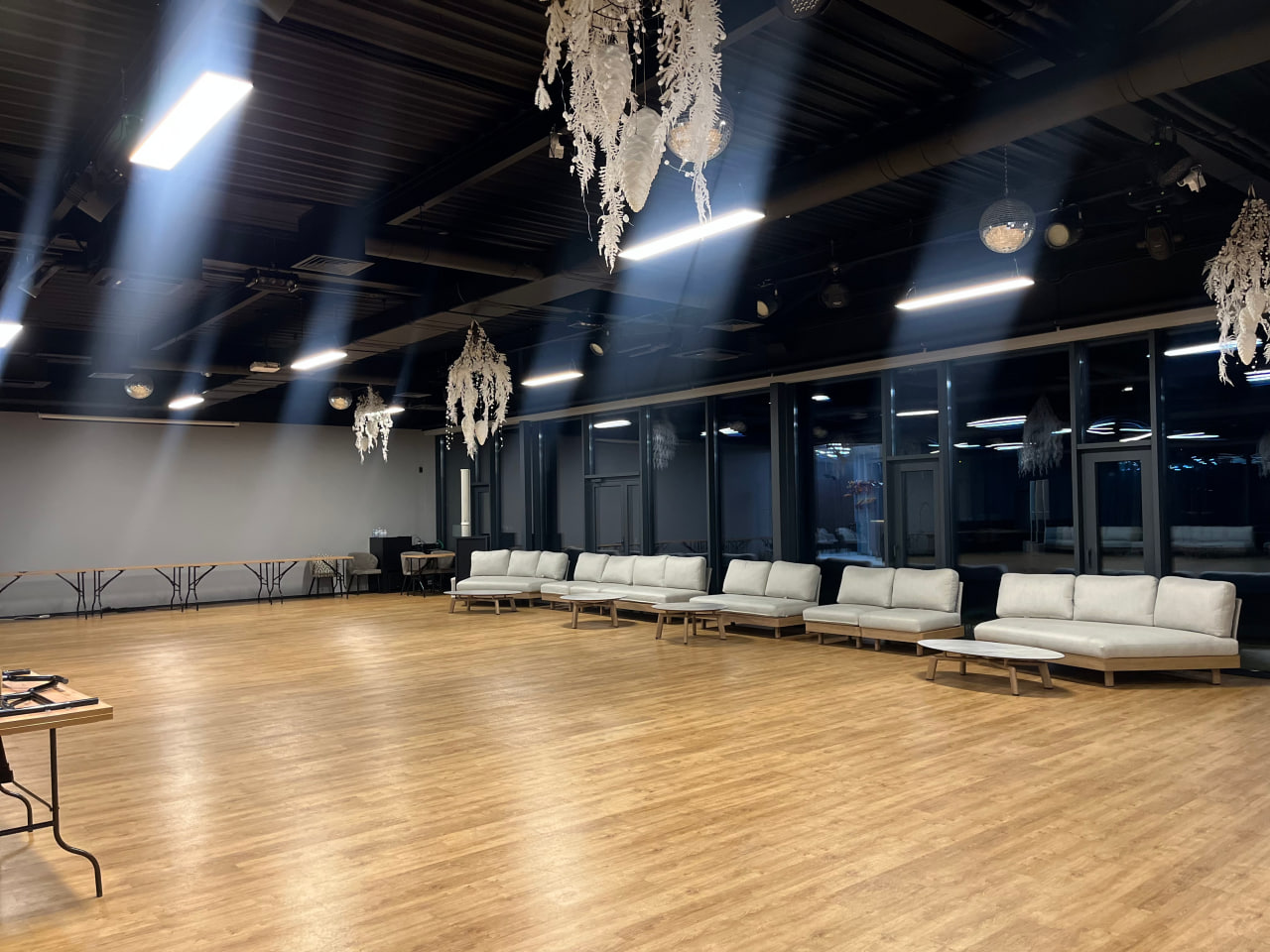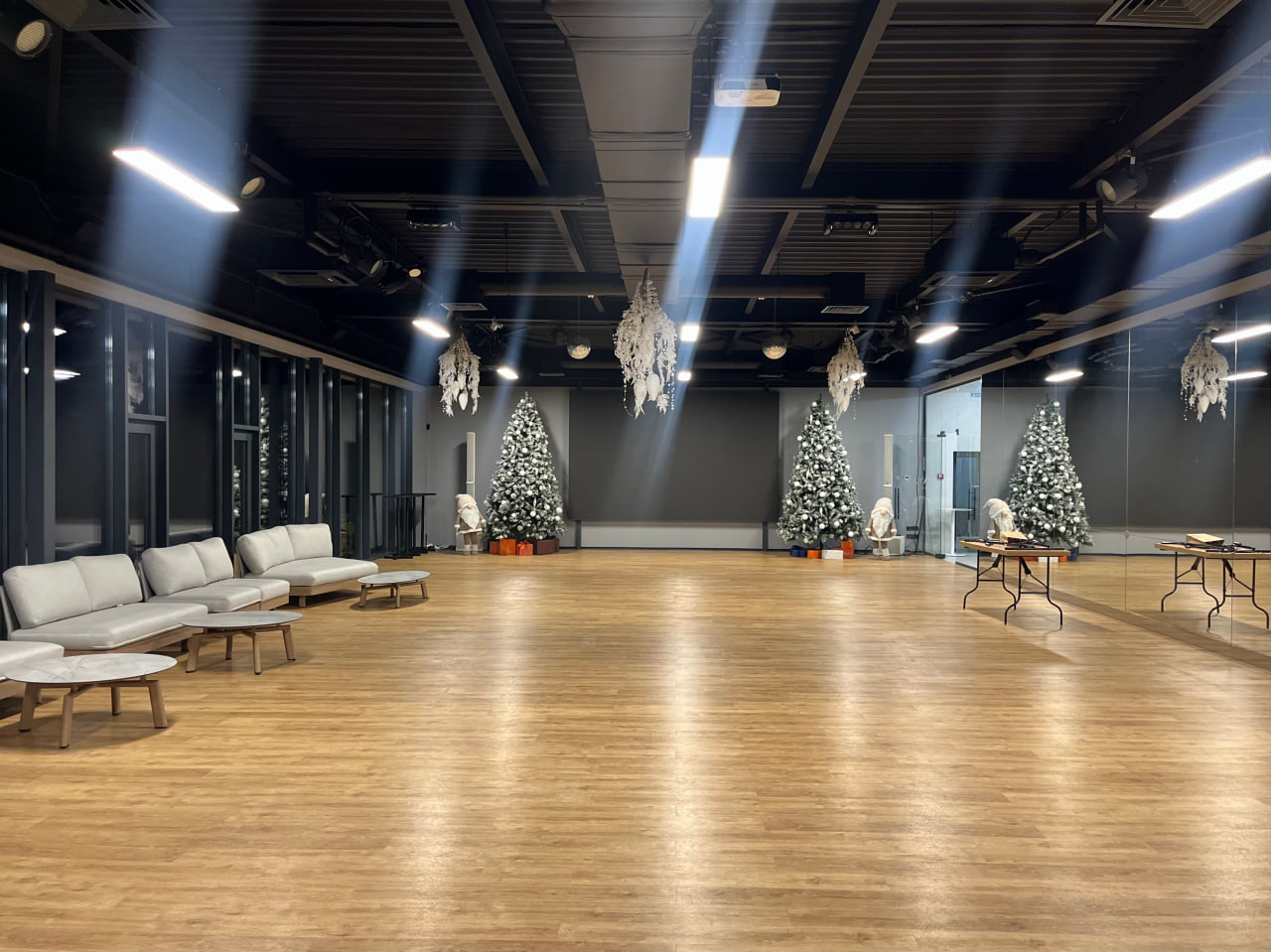 Завдяки панорамним вікнам, відкритому плануванню та елегантному дизайну, територія легко трансформується: для презентацій, церемоній, виставок чи свят. На території — лаунж-зона, вихід на вулицю, зона прийому гостей. Для комфорту й ефективної організації передбачено все необхідне: зона реєстрації, бар, дві роздягальні, лаунж-зона і сервіс, що охоплює кожну деталь. Локація підтримує ідею гнучкості: будь-який захід набуває свого характеру.
