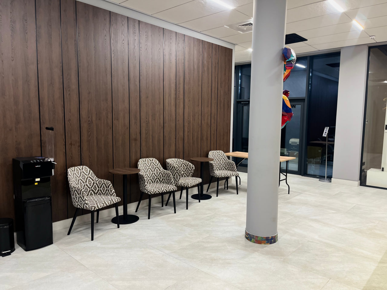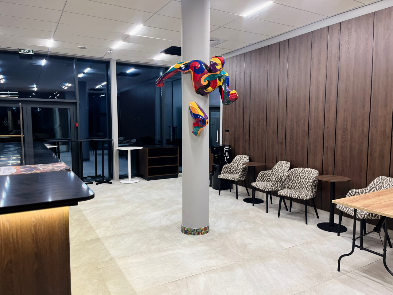 На території — лаунж-зона, вихід на вулицю, зона прийому гостей.