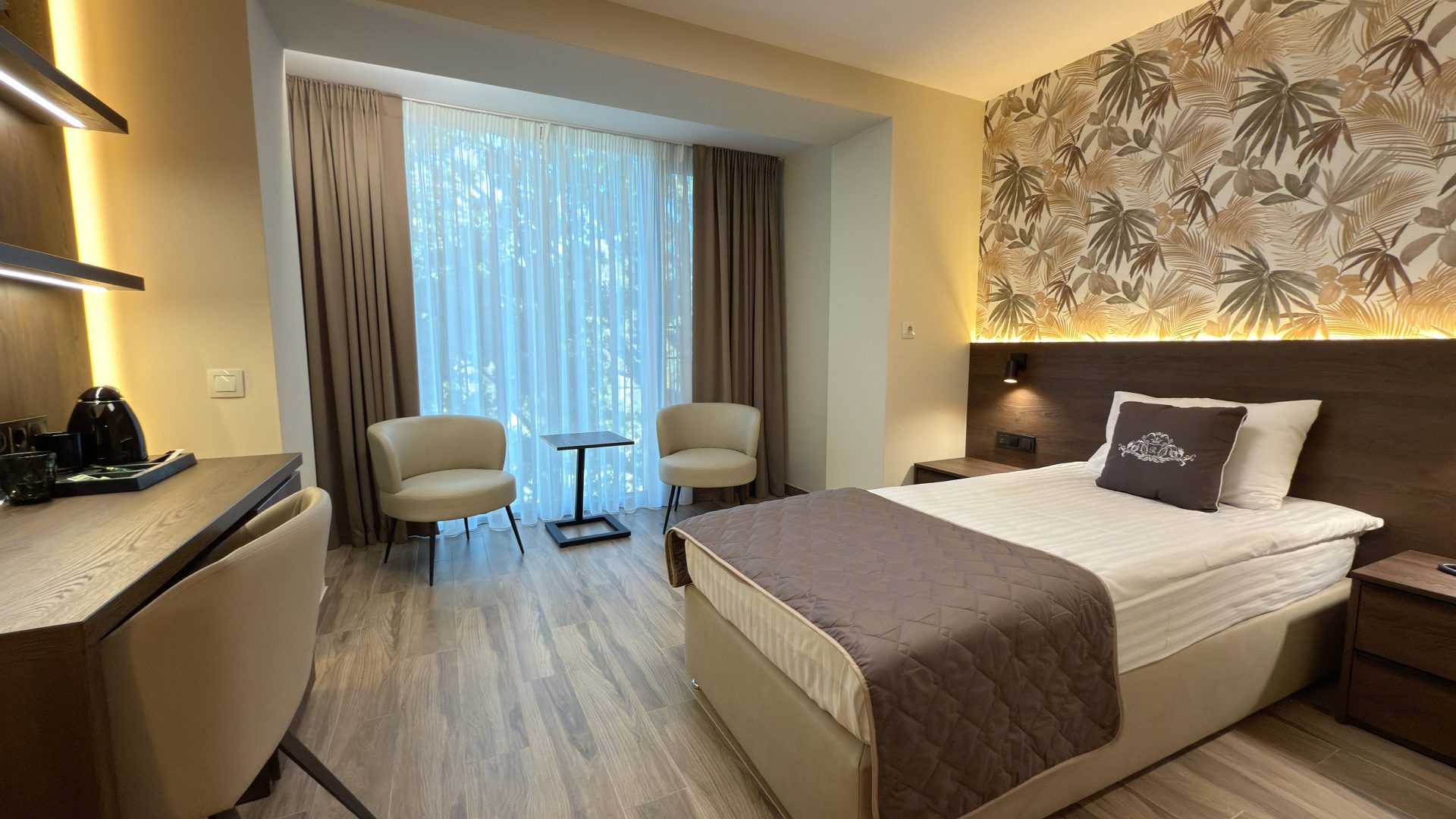 Ідеальний однокімнатний номер для одного гостя — затишок, приватність і всі базові зручності.