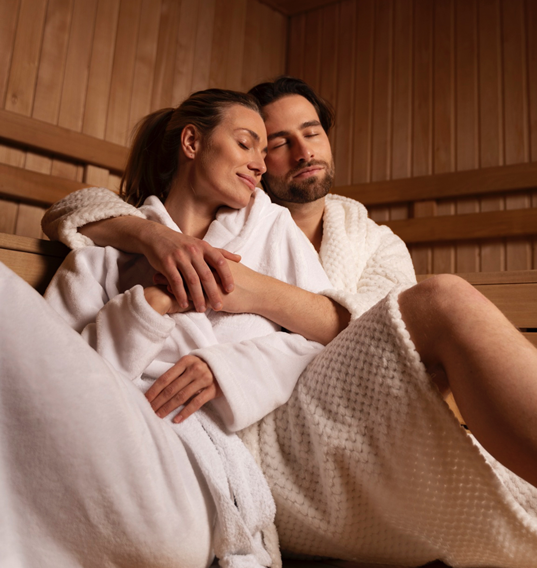Фінська баня — це класика у світі відновлення. Температура до +95°C, сухе тепло, деревʼяне оздоблення. Простір наповнений натуральним ароматом дерева та легкими нотами аромамасел, що створюють особливу атмосферу спокою. Сауна прискорює метаболізм, очищує шкіру й ідеально готує до контрастних процедур. Чудовий вибір для тих, хто цінує справжнє тепло та тишу.
