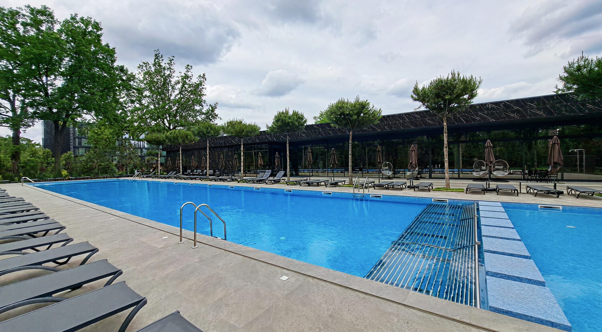 Басейн просто неба, оточений соснами, з видом на наш ландшафтний парк — це відпочинок у гармонії з природою. Розміри 40х8м, глибина 1,5м. Тиха атмосфера, повітря насичене хвоєю, ідеальні умови для плавання й релаксу в будь-який час доби. Підсвітка — для комфортного вечірнього плавання.